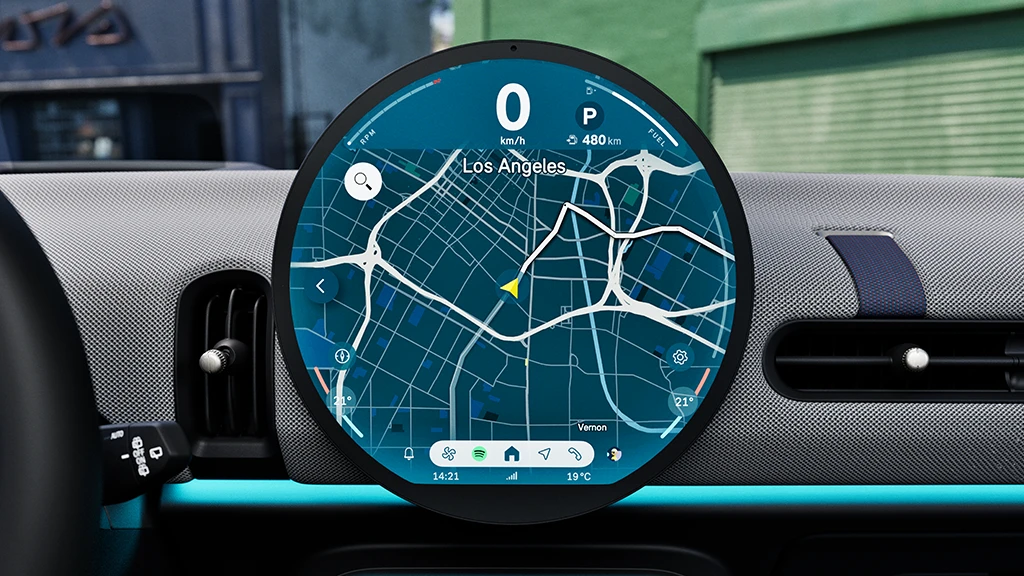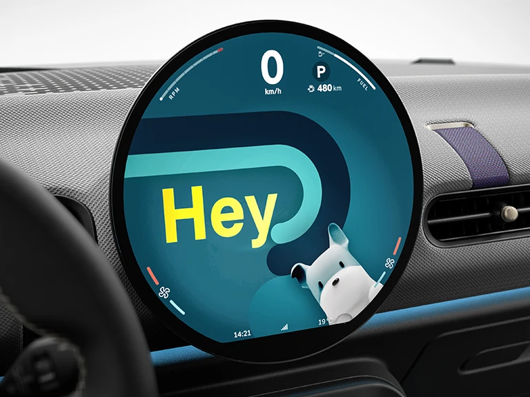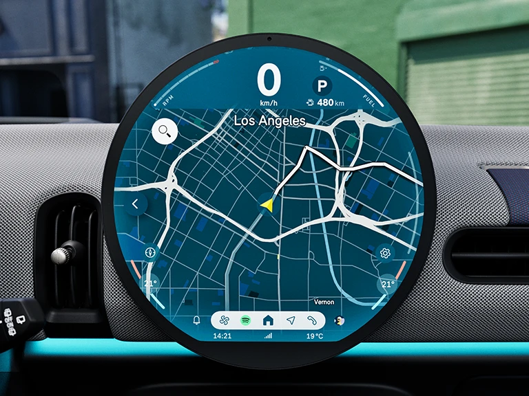 Препознатливиот централен дисплеј од 240 mm изработен од високо квалитетно стакло е Вашата табла за инструменти, за забава и за асистенција. Исто така, тој е првиот тркалезен дисплеј во светот.