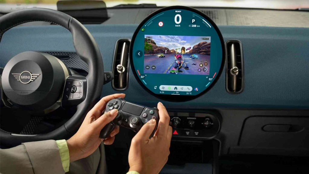 Конзолата за игри интегрирана директно во MINI Display, Available AirConsole, Ви овозможува да играте додека сте паркирани. Со избор од 50 апликации од трети страни, никогаш нема да имате здодевно запирање повторно.